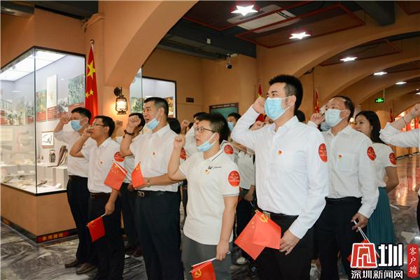 參觀活動結束后,全體成員進行了重溫入黨誓詞環(huán)節(jié)。在鮮紅的黨旗下,黨員們舉起右拳,在羅湖區(qū)委宣傳部二級調研員李文威的帶領下莊嚴宣誓,大家仿佛又看到了自己第一次站在莊嚴的黨旗下宣誓的樣子:“我志愿加入中國共產黨,擁護黨的綱領,遵守黨的章程……”一聲聲鏗鏘有力的入黨誓詞在博物館中回響。