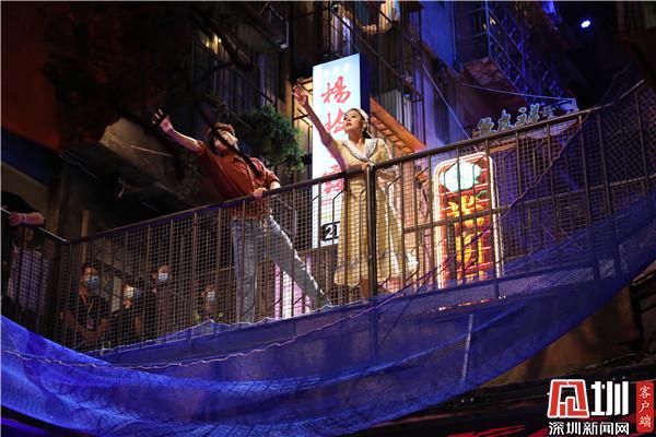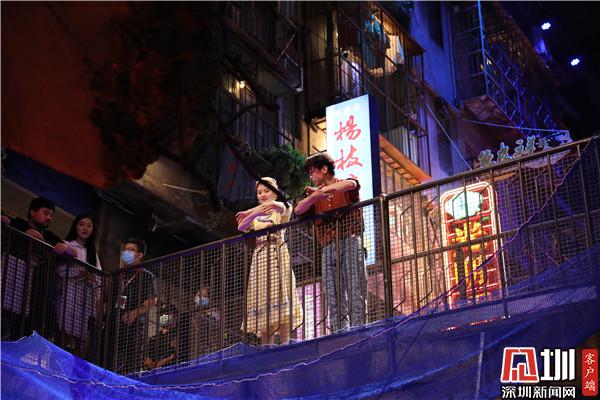 沿著新園路向前,就來到了羅湖東門商圈網(wǎng)紅打卡圣地:深圳文和友。舊舊的樓房加上復(fù)古牌匾,橋上的綠皮火車不時經(jīng)過,讓人一秒穿越到上世紀九十年代......進入到深圳文和友的內(nèi)部,復(fù)古港式、霓虹牌匾,隨手一拍都是港風(fēng)大片。還有游戲廳、小吃街、市集、復(fù)古公交站、百貨店令人目不暇接....網(wǎng)紅茶飲茶顏悅色也在等著大家的到來。文和友內(nèi)還有時長1小時的沉浸式戲劇——《綺夢》上演,演員表演張力十足,觀眾和演員距離僅1米,讓觀眾身臨其境。