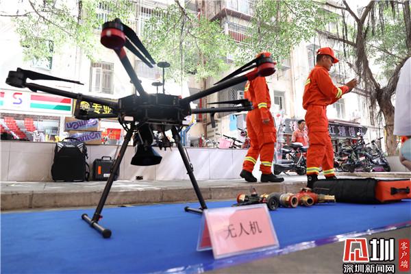 活動現(xiàn)場,宣傳教育區(qū)、技能展示區(qū)、互動體驗區(qū)、趣味比賽區(qū)等人頭攢動,不時傳來陣陣贊嘆聲、歡呼聲。來自羅湖區(qū)森防大隊、消防救援大隊的隊員們,向群眾講解無人機、液壓切割機、消防機器人等救援設備、裝備,演示森防油鋸速切木頭、風力滅火機吹磚頭等等比武項目;居民體驗使用干粉滅火器;美國心臟協(xié)會AHA導師向居民示范教學心肺復蘇急救。趣味比賽區(qū)專門設置了防汛沙袋搬運、疊放競速、簡易擔架搬運假人傷員、4*20M消防水帶接力等獨具防災減災特色的趣味比賽項目,吸引了眾多社區(qū)居民積極參與。