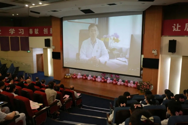 大連市中心醫(yī)院袁宏院長(zhǎng)現(xiàn)場(chǎng)發(fā)來視頻祝福,圍繞“做人、做護(hù)士、做天使”為中心思想的優(yōu)質(zhì)護(hù)理服務(wù)理念,與在場(chǎng)的同仁們一起分享和探討心得感悟,并祝羅湖醫(yī)院的護(hù)理兄弟姐妹們節(jié)日快樂。