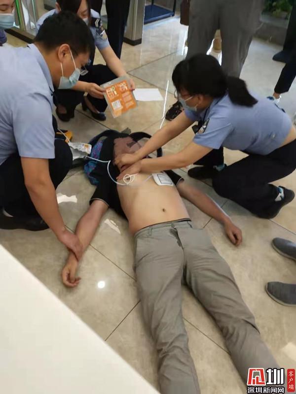 5月8日上午,市民韓先生及朋友李先生同行前往羅湖車管所處理個人交通違章業(yè)務。正當兩人在車管大廳咨詢臺詢問相關(guān)業(yè)務時,韓先生突發(fā)身體不適,徑直癱軟在朋友李先生身上?,F(xiàn)場值班民警陳瑞、李曉燕、楊濤發(fā)現(xiàn)該情況后,快速上前查看,只見該男子躺在地上,雙目緊閉、臉色發(fā)青、心臟驟停、呼吸微弱,在其耳邊連聲叫喊,也沒有任何反應。