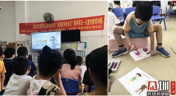 5月20日,由深圳市羅湖區(qū)清水河街道辦事處主辦,梅園社區(qū)黨委、梅園社區(qū)黨群服務(wù)中心協(xié)辦,深圳市社聯(lián)社工服務(wù)中心承辦的困境兒童關(guān)愛保護(hù)“政策宣講進(jìn)社區(qū)”服務(wù)項(xiàng)目,在梅園社區(qū)一建幼兒園開展兒童性教育講座。