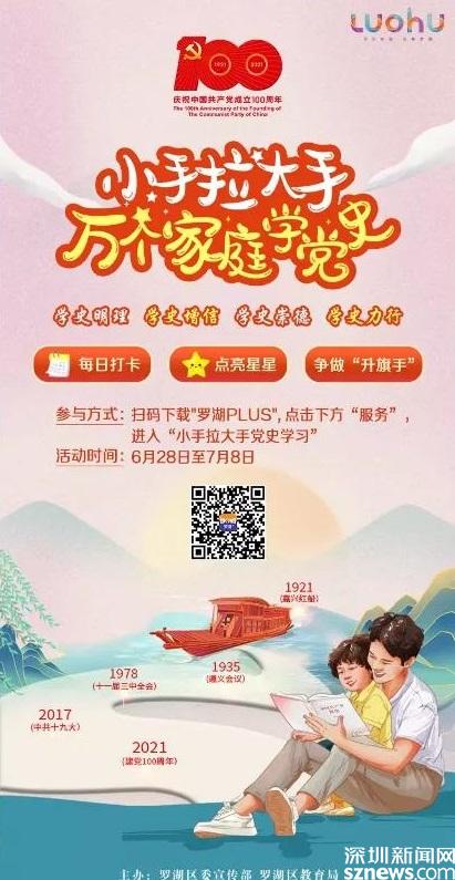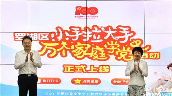 讀特客戶(hù)端·深圳新聞網(wǎng)2021年6月28日訊(記者 劉嘉敏 彭桂紅 通訊員 李瑩瑩)“七一”將至,為慶祝中國(guó)共產(chǎn)黨成立100周年,進(jìn)一步推動(dòng)羅湖區(qū)黨史學(xué)習(xí)教育走深走實(shí),羅湖區(qū)委宣傳部聯(lián)合羅湖區(qū)教育局于6月28日在“羅湖Plus”客戶(hù)端正式推出“小手拉大手”萬(wàn)個(gè)家庭學(xué)黨史活動(dòng)。當(dāng)天,羅湖區(qū)委常委、宣傳部部長(zhǎng)呂漫妮,羅湖區(qū)副區(qū)長(zhǎng)、二級(jí)巡視員宋強(qiáng)等領(lǐng)導(dǎo)出席啟動(dòng)儀式。