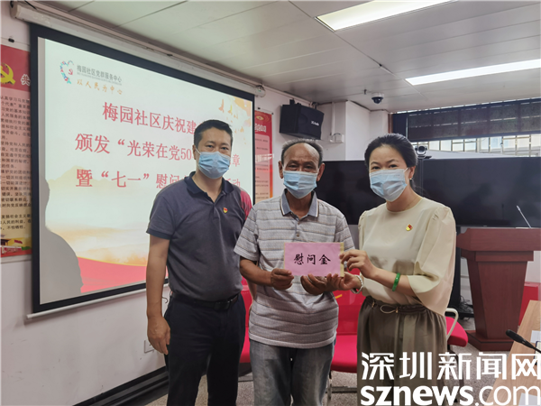 讀特客戶端·深圳新聞網(wǎng)2021年6月30日訊(記者 郭含笑 通訊員 陳秋珊 紀(jì)楚苗)為進(jìn)一步加強(qiáng)和體現(xiàn)黨組織對黨員的關(guān)心與愛護(hù),在中國共產(chǎn)黨百年華誕來臨之際,6月30日下午,深圳市羅湖區(qū)清水河街道梅園社區(qū)黨委在黨群服務(wù)中心二樓會議室舉行慶祝建黨百年頒發(fā)“光榮在黨50年”紀(jì)念章暨“七一”慰問主題黨日活動。
