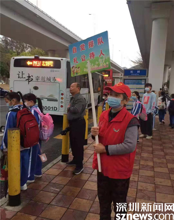 蓮塘街道長(zhǎng)嶺社區(qū)的趙文英是一位72歲的老人,老家在河南信陽(yáng)。退休前,她是一所中專學(xué)校的醫(yī)護(hù)教師,退休后,她隨子女來到深圳。有天,她無(wú)意間注意到長(zhǎng)嶺社區(qū)長(zhǎng)嶺公交站來往車輛較多,上下學(xué)期間該公交站小朋友較多,如果沒有一個(gè)人進(jìn)行現(xiàn)場(chǎng)管理或指引,很容易發(fā)生意外事故。于是她主動(dòng)無(wú)償堅(jiān)持在長(zhǎng)嶺公交站臺(tái)做義工維持秩序,用一片愛心去守護(hù)孩子的安全,這一做就是好幾年。