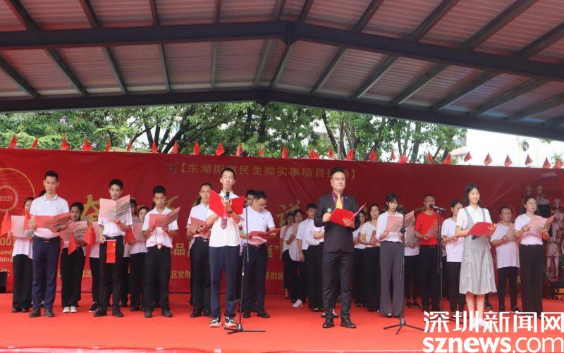 讀特客戶端·深圳新聞網(wǎng)2021年7月30日訊(見習(xí)記者 邱婕 通訊員 黃小花)百年征程波瀾壯闊、百年初心歷久彌堅、百年成就催人奮進(jìn)、百年歌聲唱響今天。7月30日上午,“百幅紅色作品,獻(xiàn)禮百年華誕”東樂社區(qū)建黨100周年慶祝活動在東樂花園文化廣場舉行。東湖街道黨工委副書記、辦事處主任劉慧堅,黨工委副書記、人大工委主任謝統(tǒng)敏,東湖街道二級調(diào)研員、東樂社區(qū)第一書記曾列文,東湖街道辦事處副主任李民,羅湖區(qū)退役軍人事務(wù)局副局長何朝陽,東樂社區(qū)黨委書記劉芳,東樂社區(qū)社工與義工及廣大居民朋友400余人參與此次活動。