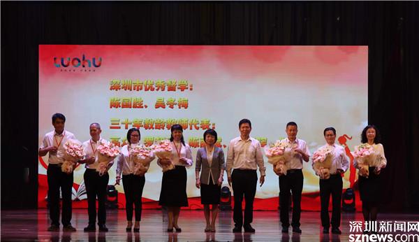 會上,羅湖區(qū)委書記羅育德,深圳市教育局黨組成員、副局長王水發(fā),羅湖區(qū)委副書記、區(qū)人民政府黨組書記、代區(qū)長范德繁等領導出席大會并為深圳市十佳校長、2021年市級年度教師、2021年區(qū)幼兒園年度教師,三十年教齡教師、功勛園丁、教育先進單位、先進教育工作者、優(yōu)秀班主任和優(yōu)秀教師等代表頒獎。