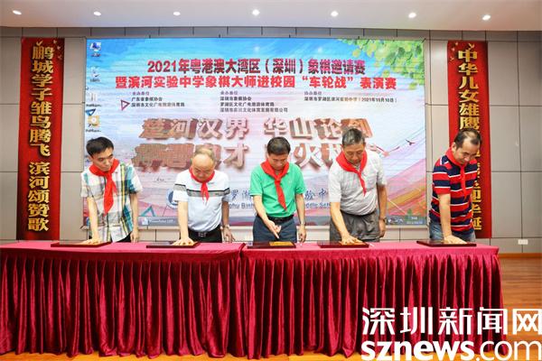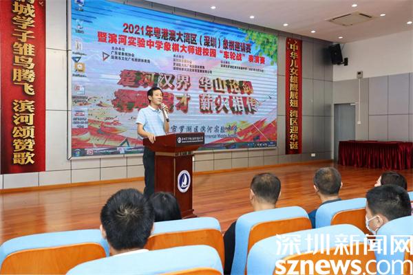 讀特客戶端?深圳新聞網(wǎng)2021年10月10日訊(見習記者 鐘林 通訊員 凌玲)10月10日上午,羅湖濱河實驗中學內(nèi)“狼煙四起”,一片激烈景象,原來,是呂欽、蔣全勝、柳大華、莊玉庭和曹巖磊5位象棋大師齊聚校園,和55名學校師生共同開展2021年粵港澳大灣區(qū)(深圳)象棋邀請賽暨濱河實驗中學象棋大師進校園“車輪戰(zhàn)”表演賽。