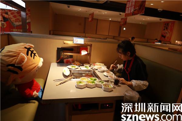 冬季是火鍋消費(fèi)的旺季,在用餐高峰期,位于深圳市羅湖區(qū)這家連鎖火鍋店里,可見(jiàn)門(mén)口顯眼處貼著“半份菜 滿份愛(ài)”的海報(bào),店內(nèi)還有光盤(pán)行動(dòng)等標(biāo)語(yǔ),還有一名光盤(pán)行動(dòng)倡導(dǎo)員在餐廳內(nèi)不時(shí)給消費(fèi)者溫馨提示,倡導(dǎo)顧客適量點(diǎn)餐。