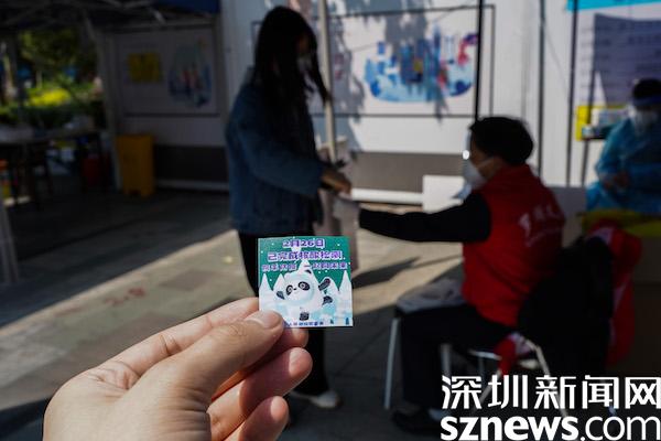 在桂園海翔廣場核酸檢測點(diǎn),完成檢測后會收到工作人員發(fā)放的印有“冰墩墩”圖畫的當(dāng)日“已檢”貼紙。