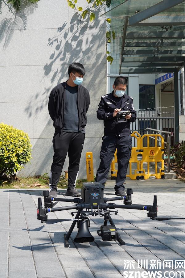 “為了您和家人的健康,所有在桂園街道轄區(qū)工作、生活的居民,從2月24日起連續(xù)4天實行全員核酸檢測,4天4檢。轄區(qū)內(nèi)所有物業(yè)小區(qū)、商業(yè)樓宇、市場等場所均設(shè)置卡口,人員進(jìn)入需掃描“場所碼”……”中午,記者在桂園街道鹿苑小區(qū)外見到,民警與無人機(jī)飛手正操控著一款“神兵利器”,助陣疫情防控,空中喊話管控、防范區(qū)居民,快速傳遞最新防疫信息。