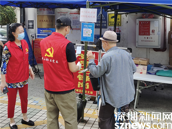 3月21日上午,在聚?;▓@黨員先鋒崗,老黨員張瑩和年輕黨員藍(lán)國(guó)亮在幫助居民掃場(chǎng)所碼。像這樣的新老黨員齊上陣,在畔山社區(qū)各黨支部還有很多,近日,轄區(qū)各核酸采樣點(diǎn)、小區(qū)出入口和城中村圍合卡點(diǎn),處處可見鮮紅的黨旗和忙碌的紅馬甲,他們用實(shí)際行動(dòng)影響并帶動(dòng)更多的熱心市民群眾參與社區(qū)服務(wù),為一線防疫工作“添磚加瓦”。