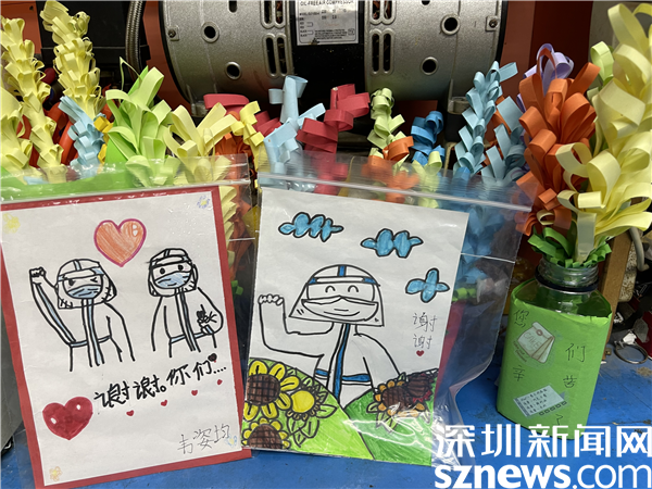 羅湖區(qū)蓮塘小學(xué)某班班長(zhǎng)見醫(yī)護(hù)人員和義工志愿者日夜操勞,不辭辛苦,號(hào)召全班同學(xué)為防疫人員“送溫暖”。有的同學(xué)親手制作五顏六色的精美手折紙花,還有些同學(xué)別出心裁的繪制了“感謝大白”賀卡,禮物制作完成后,全班同學(xué)分頭行動(dòng),將手折紙花送到各核酸采樣點(diǎn)醫(yī)護(hù)人員和志愿者手中。“我們幫不上什么,做些力所能及的事情,為大哥哥大姐姐送去感動(dòng)和力量,也是為抗疫做貢獻(xiàn)。”來自羅湖中醫(yī)院,在蓮塘村七巷小廣場(chǎng)支援的醫(yī)護(hù)人員們收到同學(xué)們送來的“禮物”非常開心,紛紛表示,雖然每天工作很辛苦,但能得到群眾尤其是孩子們的肯定十分幸福,禮物雖小,卻無比溫暖和感動(dòng)。