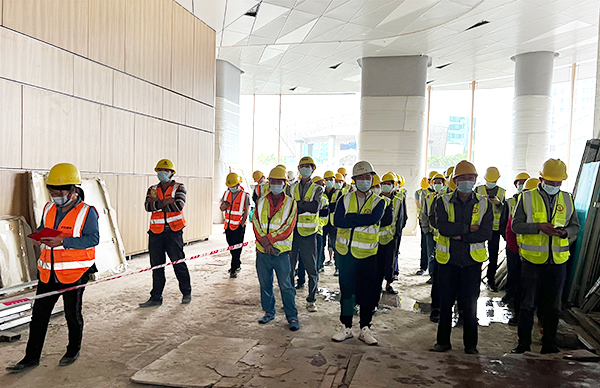 龍信建設(shè)集團(tuán)有限公司仁恒世紀(jì)大廈項(xiàng)目經(jīng)理陳建飛介紹,在保障在安全生產(chǎn)的前提下,公司對(duì)員工進(jìn)行了集中管理,做到員工宿舍和施工地點(diǎn)兩點(diǎn)一線(xiàn),就餐則采用集中配餐。在員工的管理上,以班組、工種、時(shí)段進(jìn)行分門(mén)別類(lèi)進(jìn)行管理?!爱?dāng)前,項(xiàng)目施工總?cè)藬?shù)為229名,按照‘應(yīng)檢盡檢、不漏一人’的原則,全部都進(jìn)行了核酸檢測(cè)?!比屎闶兰o(jì)大廈項(xiàng)目經(jīng)理陳建飛如是說(shuō)。