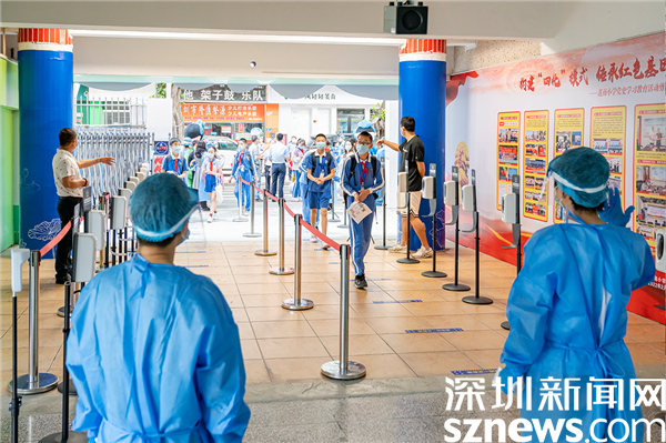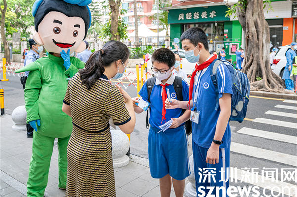 讀特客戶端·深圳新聞網(wǎng)2022年4月13日訊(記者 郭含笑 通訊員 朱莉/文 朱纓/圖)綠葉滿城,繁花綴枝。4月13日早上,蓮南小學的校門口,各類防疫設施設備整裝以待,學校領導、行政、班主任老師早早列隊等候學生返校。