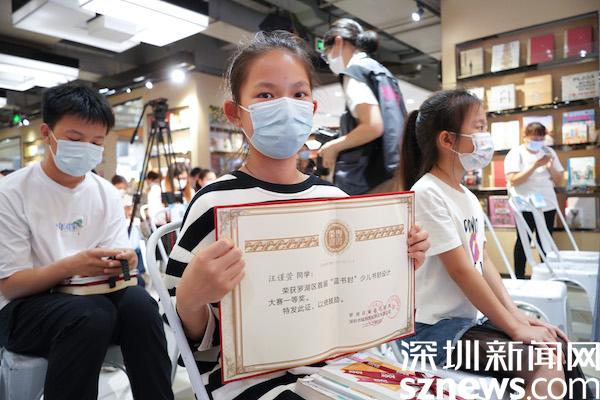 活動現(xiàn)場揭曉了大賽的一等獎、二等獎、三等獎、優(yōu)秀獎作品,以及優(yōu)秀輔導(dǎo)獎和優(yōu)秀組織獎,共有111位獲獎?wù)撸ńM織)。為了激勵孩子們繼續(xù)熱愛閱讀、鼓勵社會關(guān)注并支持未成年人閱讀,羅湖區(qū)委宣傳部還特別為獲獎?wù)邆冞M(jìn)行贈書。據(jù)了解,“藍(lán)書封”獲獎作品展同步在羅湖書城一樓藝展空間進(jìn)行,展期為4月23日-5月23日。