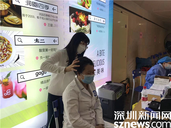 5月1日下午,老圍社區(qū)黨委書記許少瓊來到KKMALL商場負(fù)一樓的疫苗接種點,看望現(xiàn)場的工作人員和醫(yī)務(wù)人員,檢查當(dāng)天的疫苗接種情況,并與工作人員一起動員來往行人進(jìn)行加強(qiáng)針的接種。當(dāng)她聽說負(fù)責(zé)登記的醫(yī)生因為淋雨著涼而頭疼得厲害,卻還在默默堅持時,許少瓊立刻走到醫(yī)生的身后,為醫(yī)生按摩頭部。被按摩的醫(yī)生一再說,“很舒服,輕松了很多?!逼鋵?,這一天,連續(xù)工作4個月無休的許少瓊,身體也不是很好,但她用堅強(qiáng)的毅力壓抑了身體的不適,以一貫的積極樂觀影響帶動著身邊的同事。