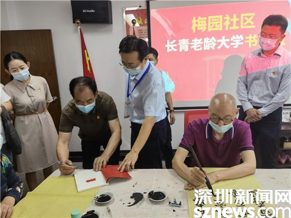 現(xiàn)場(chǎng),還邀請(qǐng)了梅園社區(qū)長(zhǎng)青老齡大學(xué)書法班鄒洪濤老師向大家講解,鄒洪濤既是書法班的老師,也是社區(qū)第十黨支部的支部書記,更是一名基建工程老兵。當(dāng)鄒洪濤介紹家喻戶曉的照片《升》的主人公正是他本人,更是讓王云虎對(duì)他豎起了大拇指。他激動(dòng)地表示,鄒洪濤的紅嶺大廈建筑工地上被定格的這張“頂天立地”的照片,是基建工程兵傾力投身改革開放的縮影,展示了深圳經(jīng)濟(jì)特區(qū)初創(chuàng)時(shí)蒸蒸日上的發(fā)展勢(shì)頭,是深圳建設(shè)初期時(shí)代張力的見(jiàn)證。