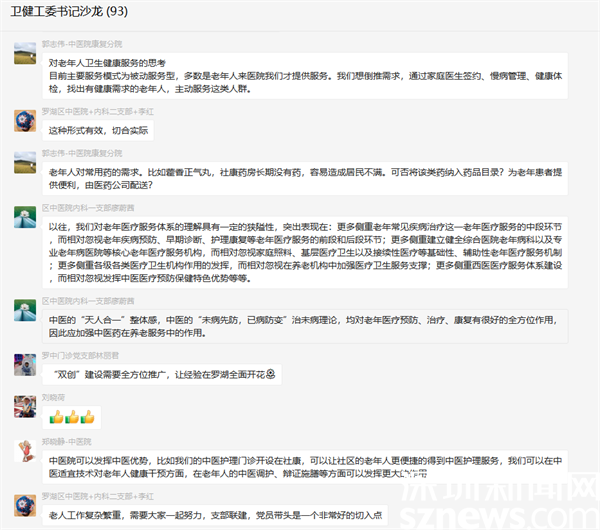 羅湖區(qū)現(xiàn)有常住60歲以上老人9.8萬人,65歲以上老人5.3萬人。如何更好地推動(dòng)“老年友好型醫(yī)院、老年友好型社區(qū)”創(chuàng)建,使轄區(qū)老年人共享羅湖醫(yī)改成果,5月25日晚8點(diǎn),區(qū)委衛(wèi)生健康工委基層“書記工作室”書記沙龍?jiān)俅螀R聚68名黨支部書記,在線上進(jìn)行“頭腦風(fēng)暴”,為“雙創(chuàng)建設(shè)”聚集體智慧、群策群力、出謀獻(xiàn)策,充分體現(xiàn)了區(qū)委衛(wèi)生健康工委基層黨組織的聚合力、執(zhí)行力和創(chuàng)造力。