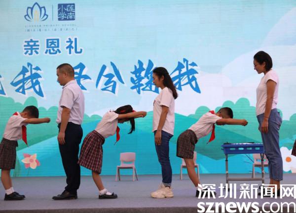 活動(dòng)由詩(shī)歌吟唱《鹿鳴》拉開了序幕?!案纲馍?,母兮鞠我”,熒幕上播放著子女和父母溫馨互動(dòng)的視頻,隨后上演的親恩禮,表達(dá)了子女對(duì)父母的深深愛意。當(dāng)主持人問到一位家長(zhǎng)時(shí),她眼含熱淚地說(shuō):“我此刻很激動(dòng)也很幸福,孩子給我捶背還給我寫卡片,感謝這次儀式感滿滿的活動(dòng),拉進(jìn)了我們家長(zhǎng)和孩子的距離,真的非常暖心!”