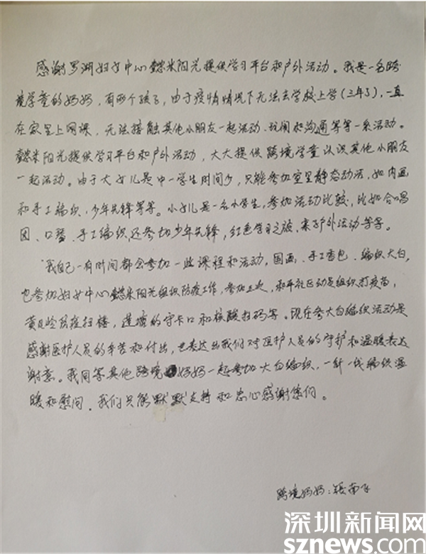 疫情發(fā)生以來,跨境兒童的家庭生活也受到頗多的關(guān)注,張南飛便是羅湖區(qū)其中一名普通的跨境學(xué)童媽媽,她的勵志故事鼓舞著身邊許多人。