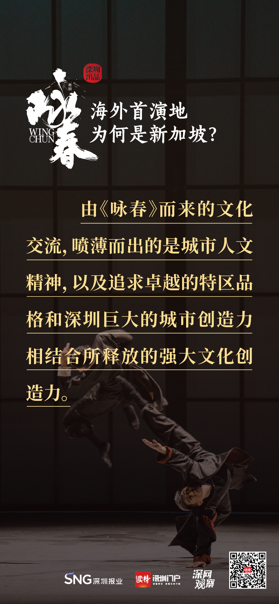 “新加坡與中國深圳血脈相連、文化相親,相信這一次的《詠春》能喚醒更多華人的文化基因!”深圳出品的原創(chuàng)舞劇《詠春》,從今年3月開啟全國首輪巡演以來,已經走遍20多個城市,巡演很快達100場,場場火爆,一票難求,成為國內歌舞劇市場的現象級佳作。據媒體報道,9月27日-30日,《詠春》受邀到新加坡濱海藝術中心連演4場,開啟海外演出。9月16日,新加坡《聯合早報》發(fā)表長文《中國舞?。荚伌海矩灤┈F代與傳統(tǒng)》稱:“這部舞劇不僅火遍神州,自從要在新加坡公演的消息傳出后,也成為獅城華人圈的熱門話題”。