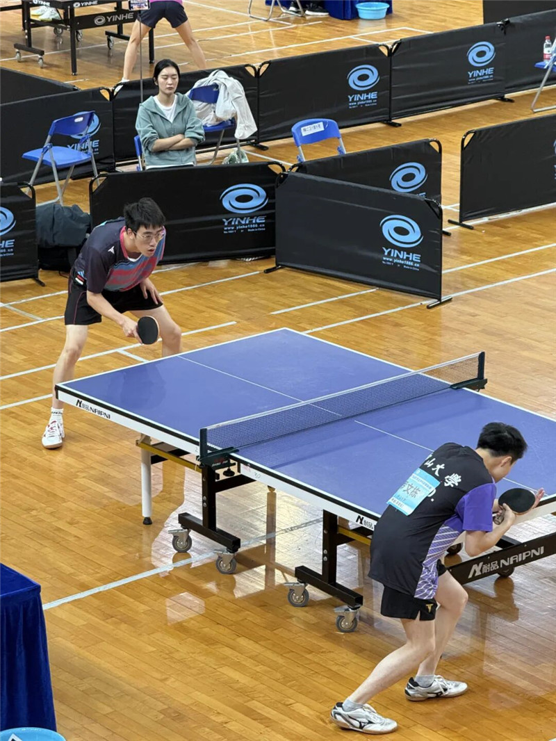 廣東省大學(xué)生乒乓球錦標賽素以競爭激烈、高手云集著稱。王沅鋮參加的男子單打項目,更是匯聚了眾多具備專業(yè)背景的運動員。從小組賽到淘汰賽,面對不同風(fēng)格的對手,王沅鋮始終沉著應(yīng)戰(zhàn),敢打敢拼,憑借精準的落點控制和靈活的前三板技術(shù)掌控節(jié)奏,最終成功鎖定四強席位,充分展現(xiàn)了其優(yōu)秀的競技水平和頑強的比賽作風(fēng)。