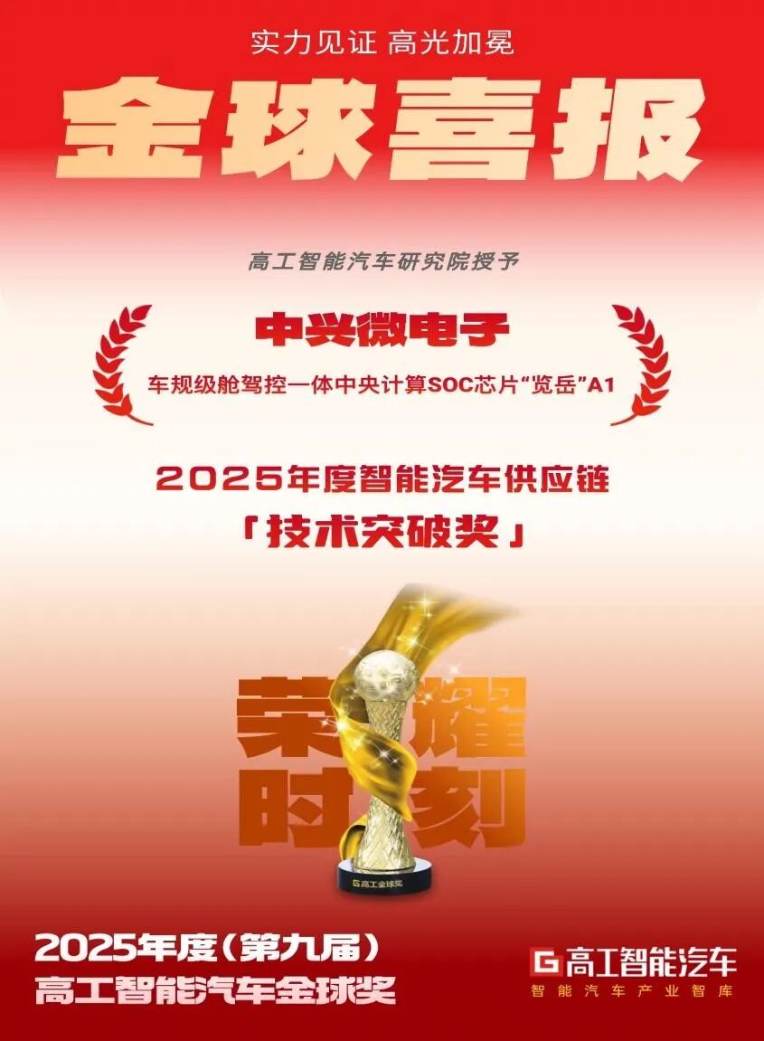 深圳新聞網(wǎng)2025年12月15日訊(記者 翁瑞峰)近日,2025年(第九屆)高工智能汽車年會暨高工金球獎頒獎典禮在上海嘉定喜來登酒店舉辦,中興微電子自研車規(guī)級艙駕控一體中央計算SOC芯片“覽岳”A1榮膺高工智能汽車金球獎——年度技術突破獎。這一殊榮標志著本土芯片企業(yè)在艙駕融合單一芯片平臺技術上的成功突破,實現(xiàn)了真正意義上的“中央計算單元”。