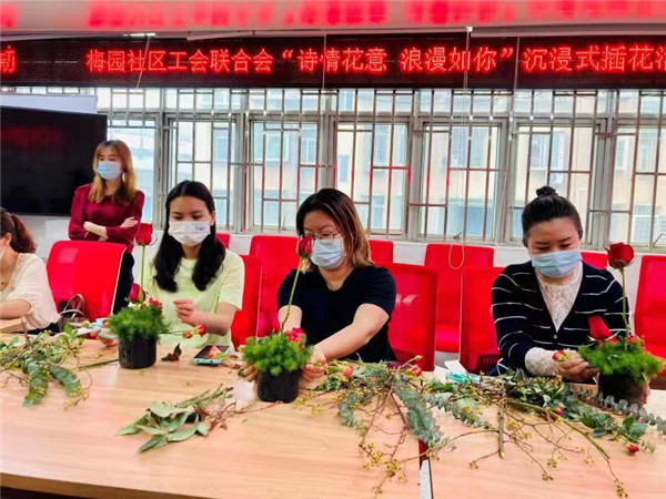 10月19日、21日,深圳市羅湖區(qū)清水河街道梅園社區(qū)工會(huì)聯(lián)合會(huì)、梅園社區(qū)婦聯(lián)、深圳市東西方社工服務(wù)社駐梅園社區(qū)黨群服務(wù)中心的社工聯(lián)合開展了兩場(chǎng)“詩(shī)情花意 浪漫如你”沉浸式插花活動(dòng)。