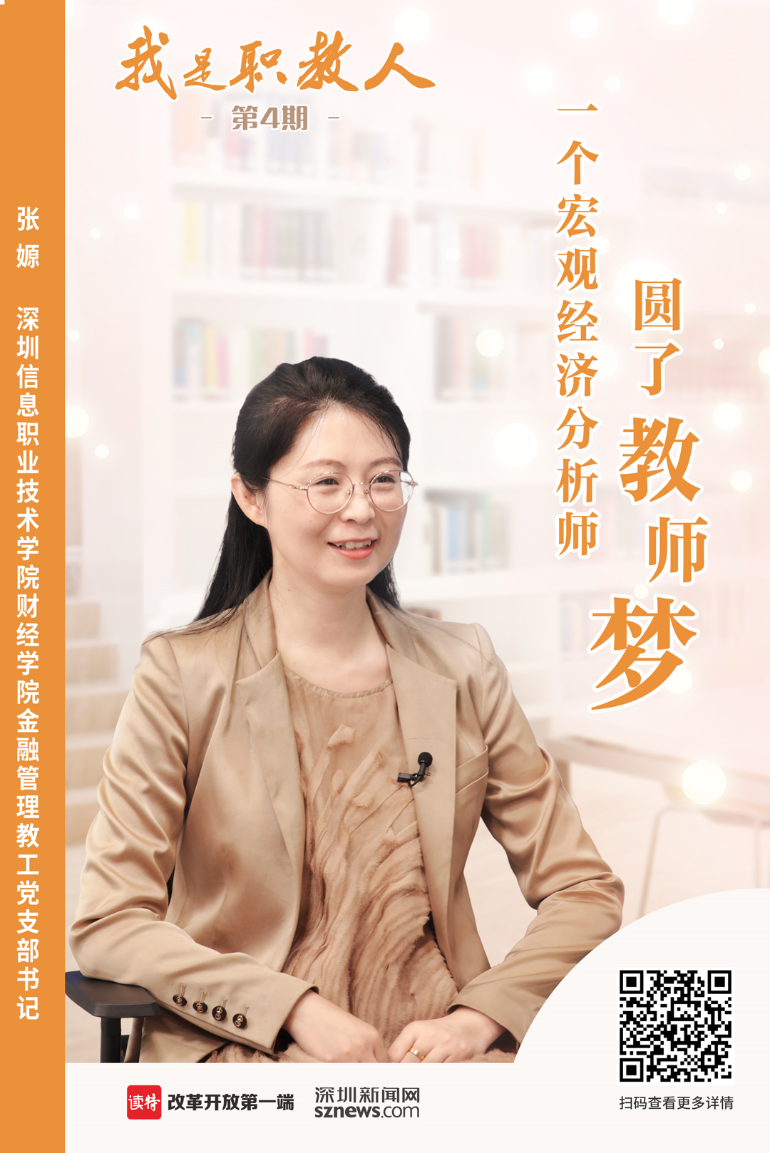深圳信息職業(yè)技術(shù)學(xué)院財(cái)經(jīng)學(xué)院金融管理教工黨支部書(shū)記張嫄,是一名80后的博士研究生,從小夢(mèng)想成為老師的她在博士畢業(yè)后卻進(jìn)入了金融行業(yè),從好夢(mèng)想到好行業(yè)再到好學(xué)校,張嫄有著萬(wàn)花筒般的人生經(jīng)歷。