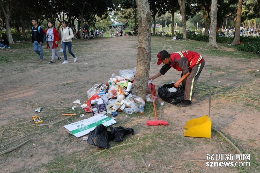 環(huán)衛(wèi)工人在清理園內(nèi)垃圾