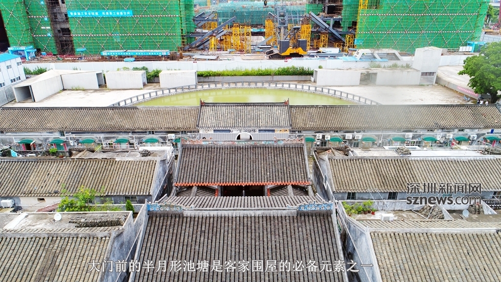 我們到訪西埔新居的時(shí)候,周邊的工地正如火如荼開工,運(yùn)送建筑材料的貨車從西埔新居一側(cè)的通道進(jìn)進(jìn)出出,站在圍屋前的半月形池塘,就可看到高大的吊車和迅速長(zhǎng)高的現(xiàn)代樓宇,村里安靜,村外喧囂,兩個(gè)世界。