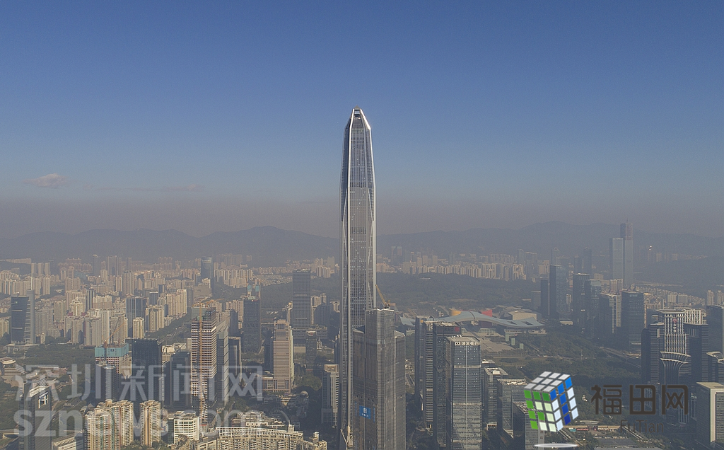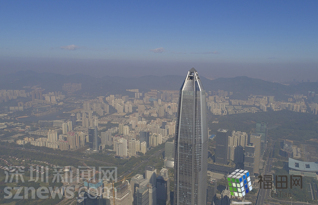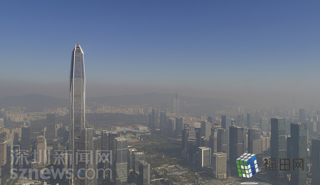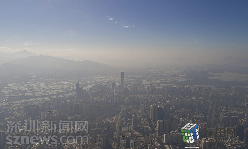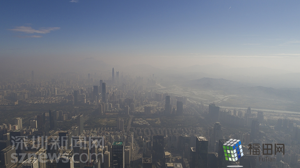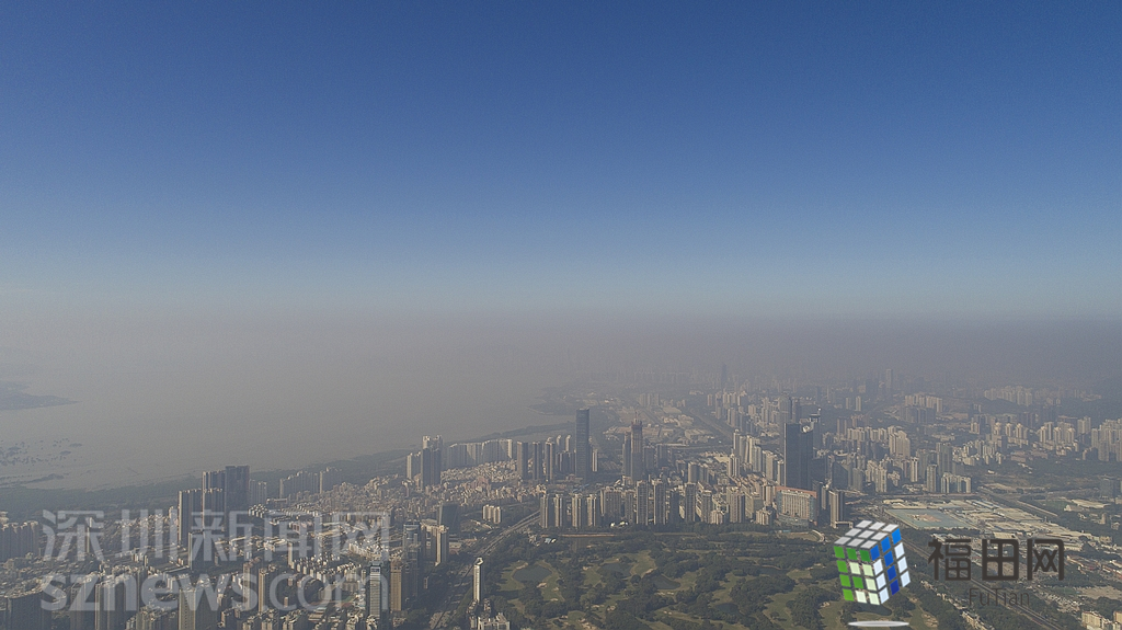1月18日上午,記者操控?zé)o人機(jī)俯瞰深圳中心區(qū)發(fā)現(xiàn),灰霾將天空“割裂”成一道涇渭分明的界線,把城市籠罩得如同一個(gè)充滿霧靄的森林。從平安金融大廈的上空遠(yuǎn)眺,西南面的深圳灣在灰霾的籠罩下變成了一片“沙漠”,東面的京基一百幾乎被灰霾“吞沒”,北邊平時(shí)肉眼可看的梅林山也因?yàn)槟芤姸容^低變得若隱若現(xiàn),南面的米埔濕地也被云遮霧繞。