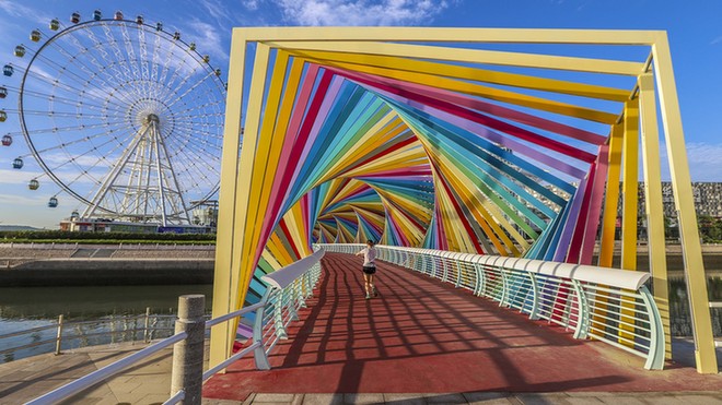 “七彩橋”亮相青島 色彩斑斕宛如童 ...