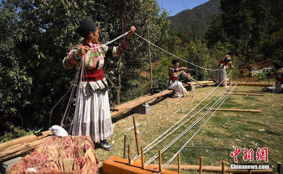 4月11日,傈僳族婦女正在繞麻線。四川涼山德昌縣南山傈僳族鄉(xiāng),一群傈僳族婦女圍坐一起,將火草搓成線與麻線交織一起織布做衣。隨著科技發(fā)展,傈僳族祖祖輩輩傳承的織布技藝面臨著傳承問(wèn)題,當(dāng)?shù)叵Mㄟ^(guò)展示,讓更多的人了解并喜歡純天然的火草麻布。中新社記者劉忠俊 攝