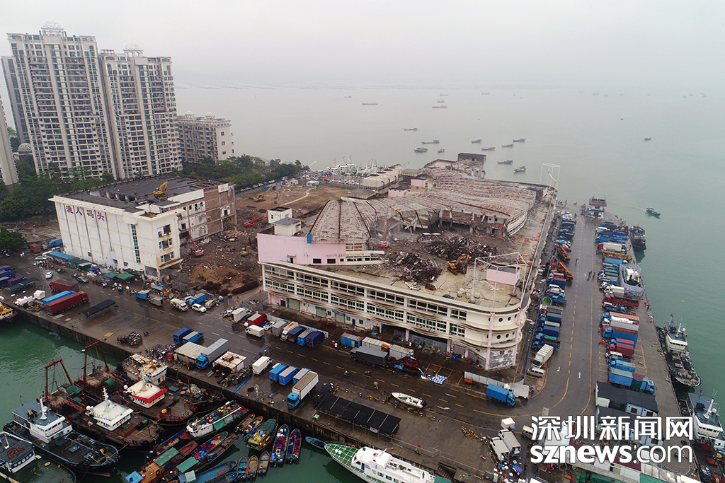圖為4月16日漁人碼頭拆除現(xiàn)場,對周邊漁船停泊和魚鋪經營并未造成影響