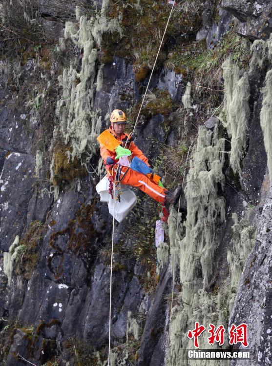 當(dāng)日,“五一”小長(zhǎng)假最后一天,峨眉山景區(qū)的環(huán)衛(wèi)工、山地救援隊(duì)的志愿者,在懸崖下200米清理游客丟棄的垃圾。 中新社記者劉忠俊 攝