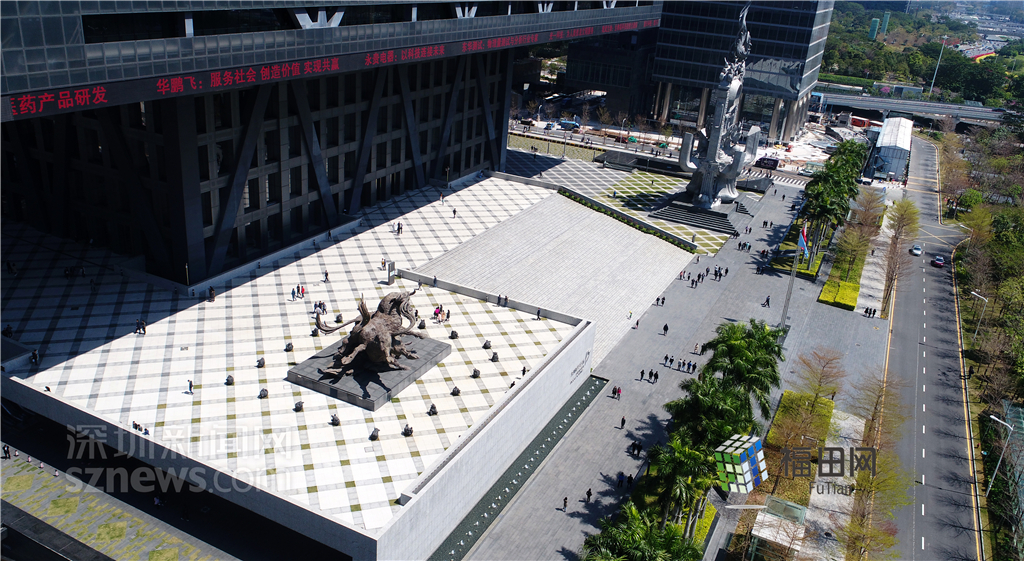 深交所由方正的塔樓和空中懸挑的裙樓所組成,大廈底座被抬升至30多米形成一個(gè)巨大的“漂浮平臺(tái)”。