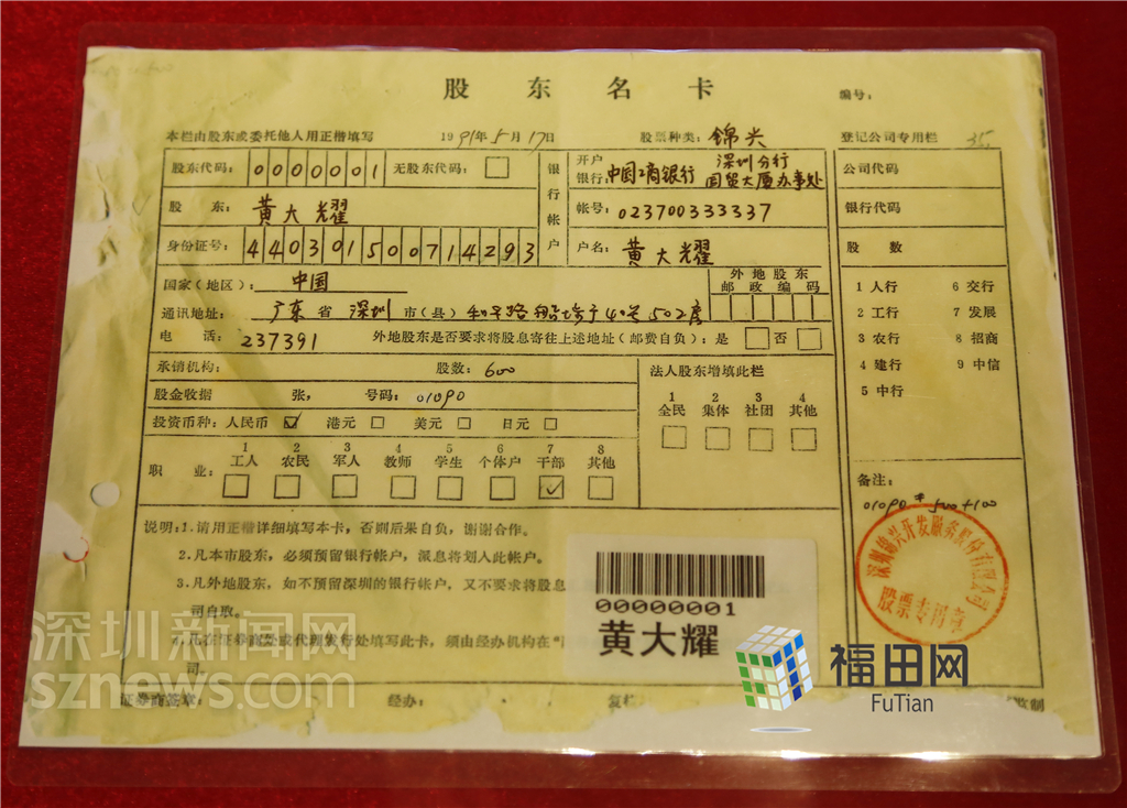 深圳1991年11家上市公司新股認(rèn)購申請表。