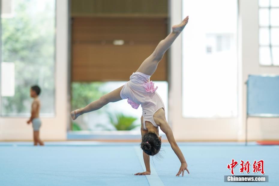 7月16日,貴州榕江,小學(xué)員龍見昕在進(jìn)行體操訓(xùn)練。位于月亮山深處的貴州省黔東南苗族侗族自治州榕江縣,數(shù)十年來堅(jiān)持少年兒童體操培養(yǎng)、訓(xùn)練,對于全縣有良好身體條件的少年兒童進(jìn)行免費(fèi)集中培訓(xùn)。目前該縣每年有60余名兒童在業(yè)余體操運(yùn)動學(xué)校進(jìn)行訓(xùn)練。炎炎夏日,孩子們不懼酷暑,刻苦訓(xùn)練追尋著自己的“體操夢”。據(jù)了解,自1972年以來,榕江縣先后向貴州省體操隊(duì)、蹦床隊(duì)輸送了21名運(yùn)動員;其中有6名運(yùn)動員進(jìn)入國家體操隊(duì),10名運(yùn)動員榮獲“國家健將級運(yùn)動員”稱號,5名運(yùn)動員榮獲“國際健將級運(yùn)動員”稱號,其中體操名將劉榕冰是2014年體操世錦賽男團(tuán)冠軍成員之一。2004年,榕江縣被貴州省體育局授予“貴州體操之鄉(xiāng)”稱號。中新社記者賀俊怡 攝