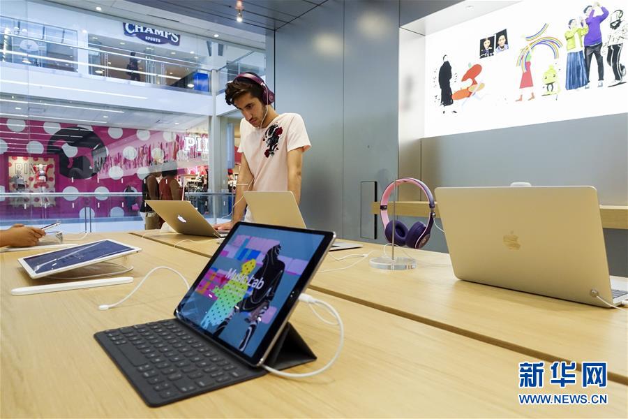 8月2日,顧客在美國紐約一家蘋果專賣店選購商品。 新華社記者王迎攝