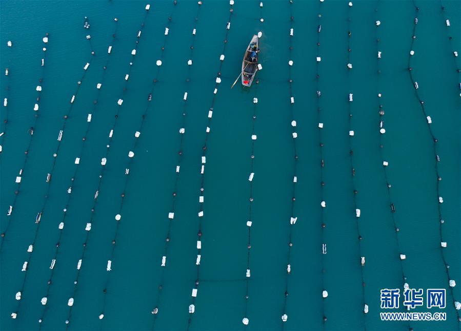 8月18日,南麂島海域的“海上牧場(chǎng)”養(yǎng)殖區(qū)內(nèi),漁民準(zhǔn)備進(jìn)行養(yǎng)殖作業(yè)(無(wú)人機(jī)拍攝)。進(jìn)入8月,浙江省溫州市平陽(yáng)縣南麂鎮(zhèn)海域上大片的大黃魚(yú)、貽貝等特色海產(chǎn)品養(yǎng)殖區(qū)域迎來(lái)豐收季節(jié),養(yǎng)殖戶們駕駛漁船在養(yǎng)殖區(qū)海域進(jìn)行打撈收獲,在碧海藍(lán)天下構(gòu)成了一幅“海上牧場(chǎng)”的美麗豐收景象。近年來(lái),南麂鎮(zhèn)政府引導(dǎo)漁民養(yǎng)殖戶充分發(fā)揮“靠海吃?!钡馁Y源優(yōu)勢(shì),大力發(fā)展海洋養(yǎng)殖經(jīng)濟(jì)和海島旅游經(jīng)濟(jì),實(shí)現(xiàn)了南麂由“生態(tài)美”向“產(chǎn)業(yè)美”,“產(chǎn)業(yè)美”向“經(jīng)濟(jì)美”的轉(zhuǎn)變。同時(shí)該鎮(zhèn)堅(jiān)持以大黃魚(yú)、貽貝等為特色產(chǎn)業(yè)支撐,精準(zhǔn)發(fā)展高效海洋養(yǎng)殖業(yè),重點(diǎn)培養(yǎng)一批新型職業(yè)漁民,依靠專業(yè)技術(shù)支持,實(shí)現(xiàn)深海仿生養(yǎng)殖,讓好生態(tài)造就好品質(zhì),重點(diǎn)打造南麂養(yǎng)殖品牌,組建營(yíng)銷網(wǎng)絡(luò),拓展特色海產(chǎn)品市場(chǎng)。新華社記者 徐昱攝