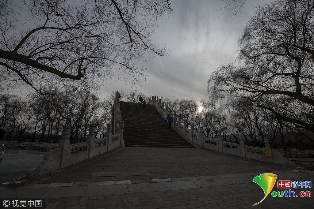 2018年2月23日,北京頤和園。當(dāng)天日落時(shí)分昆明湖上空出現(xiàn)夕陽(yáng)余暉的美景,夢(mèng)幻般的色彩將古老的皇家園林裝扮得美輪美奐,讓人流連忘返。