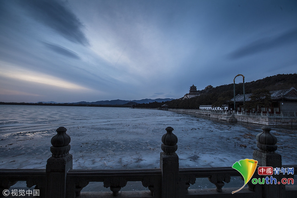 2018年2月23日,北京頤和園。當天日落時分昆明湖上空出現(xiàn)夕陽余暉的美景,夢幻般的色彩將古老的皇家園林裝扮得美輪美奐,讓人流連忘返。