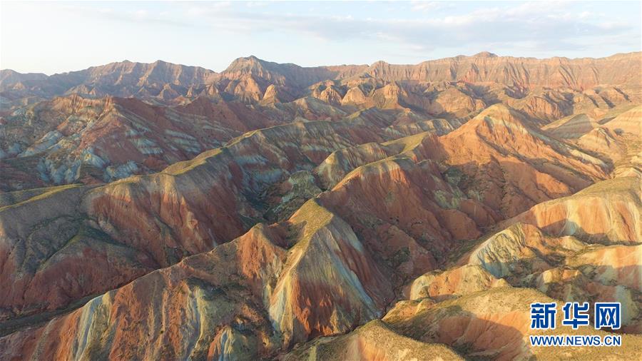 這是7月15日拍攝的蘭州樹屏丹霞地貌。蘭州樹屏丹霞國家地質(zhì)公園位于甘肅省蘭州市永登縣咸水河流域及其毗鄰地區(qū),分布在蘭州市所屬的永登縣、皋蘭縣、西固區(qū)、安寧區(qū),主體位于永登縣樹屏鎮(zhèn)、苦水鎮(zhèn)和西固區(qū)河口鎮(zhèn)。其主體地質(zhì)遺跡為丹霞和彩色丘陵,登高遠(yuǎn)眺,綿延起伏,絢爛瑰麗,如同大自然創(chuàng)作的壯美油畫。新華社記者陳曄華 攝