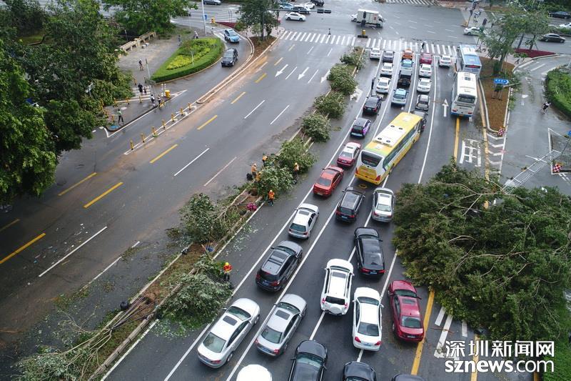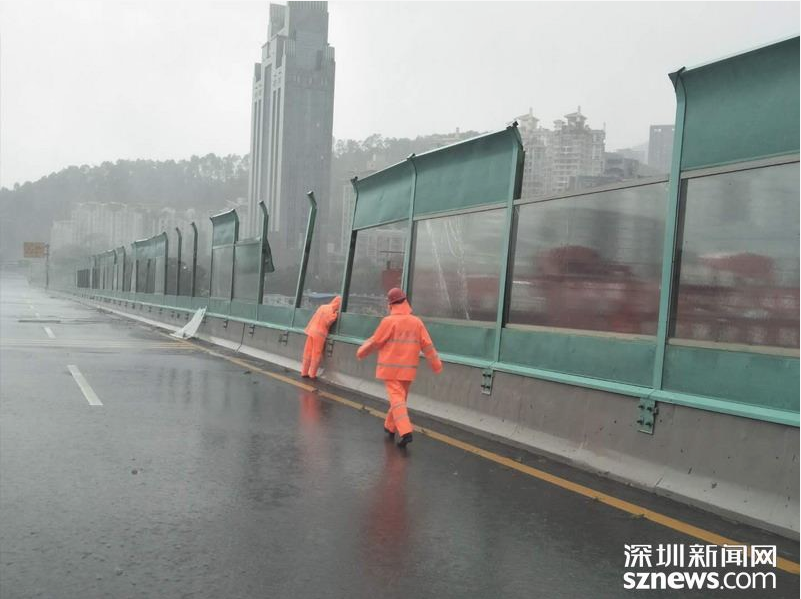 福田區(qū)位于北環(huán)皇崗立交,深圳市水務集團福田分公司梅林所防洪排澇人員,趁風勢雨小,打開雨水箅子排積水。