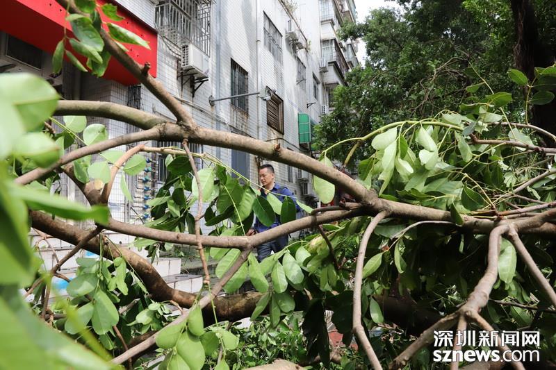 在蓮花北村靠近北環(huán)中學的小路,記者注意到拉起警戒線,有多株樹木經(jīng)不住大風考驗,已投降就地倒下。
