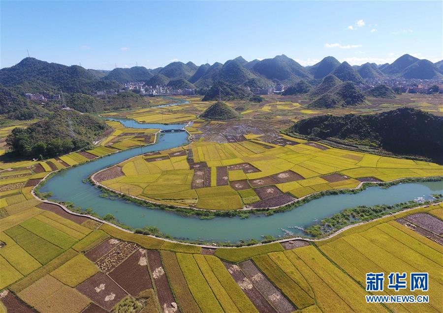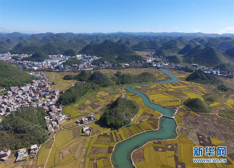 這是廣南縣八寶鎮(zhèn)壩龍村的田園景色(9月20日無(wú)人機(jī)拍攝)。 云南省文山壯族苗族自治州廣南縣八寶鎮(zhèn)今年種植優(yōu)質(zhì)水稻22000余畝,秋收季節(jié),田野里一片金黃,景色如畫(huà)。 新華社記者楊宗友攝