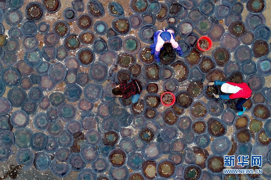 時下正值渤海灣海域海蜇收獲季節(jié),河北省灤南縣漁民開始捕撈養(yǎng)殖的海蜇。據(jù)介紹,今年該縣養(yǎng)殖的海蜇總產(chǎn)量預(yù)計超2000萬斤,產(chǎn)品將銷往京津冀以及上海、廣州、福州等地。