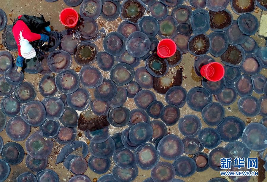 時下正值渤海灣海域海蜇收獲季節(jié),河北省灤南縣漁民開始捕撈養(yǎng)殖的海蜇。據(jù)介紹,今年該縣養(yǎng)殖的海蜇總產(chǎn)量預(yù)計超2000萬斤,產(chǎn)品將銷往京津冀以及上海、廣州、福州等地。